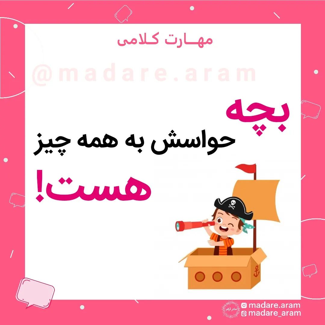 یه دقیقه بیایید کپشن👇 🌷بچه داره با چشمش تلوزیون میبینه، دستش هم ماشین اسباب بازیشه که داره رو فرش میکشه، یک گوشش به تلوزیونه و یک گوشش به حرفای ما و در آن واحد از دو جا داره صداهارو دریافت میکنه، همزمان بوی غذای پراکنده در فضا رو حس میکنه و در همون حال مشغول خوردن هم هست؛ همه ی این اطلاعات رو به طور کامل دریافت میکنه با حواس پنجگانه اش و با سرعت این اطلاعات در پوشه های جداگانه در مغزش جایگزین میشن 🌷چون سرعت دریافت اطلاهات در کودک زیر شش سال بسیار بالاست! 🌷پس حواسش به همه چیز هست!🤭 حواستو جمع کن😊 هیچی دیگه همین✋️ اول از همه خودم🤗 زود بفرست برای دوستان و آشنایان و سایر بستگان و فامیل🤕😇 #رویکرد_هوشمتعادل #استاد_سلطانی #هوش_کلامی #تقویت_هوش_کلامی #مهارت_کلامی #کلام #زبان #آموزش #والدین #کودک #بچه #مادر