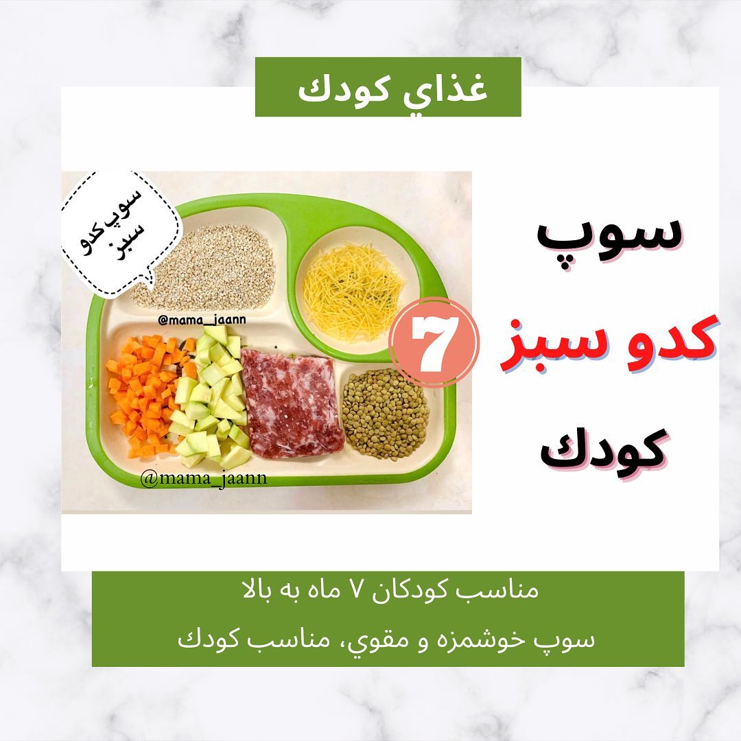 ✋🏻سلام روزتون به خير و خوشي😍😍 اين هم ي سوپ خوشمزه و مقوي پرفيبر واسه بچه هايي كه يبوست دارن😋😋 💠سوپ كدوسبز(+٧)♨️ جو:١/٥قاشق غذاخوري گوشت چرخ كرده:٤٠گرم ورميشل يا ماكاروني:١قاشق غذاخوري عدس:١/٥قاشق غذاخوري هويج:نصف عدد كدو:نصف عدد ✅عدس،گوشت،هويج و كدو رو بزاريد با ي ليوان آب بپزه وقتي كه تقريبا پخت جو و ورميشل رو بهش اضافه كنيد و بزاريد تا آبش كم بشه و غلظتش هر اندازه كه دوست داشتيد برسه. 💯با چند قطره ليمو ترش عالي ميشه😋😋 ❌نكته: ➖از همه مدل جو ميتونيد استفاده كنيد. ➖از هشت ماهگي بجاي حو ميتونيد گندم بريزيد. ➖بجاي گوشت چرخ كرده مي تونيد از گوشت خورشتي يا مرغ هم استفاده كنيد. ➖براي مقوي تر شدن ميتونيد از عصاره قلم يا پاي مرغ يا سويق خانگي استفاده كنيد(هايلايت خودت درست كن آموزش هر سه تاش هست) اگه واست مفيد بود لا.يك كن و بفرست واسه دوستات تا اونا هم استفاده كنند🥰 🌷اگر از اکسپلور میای حتما فا..لوکن اینجا قراره کلی چیز یاد بگیریم❤️☀️ @mama_jaann @mama_jaann #غذای_خانگی #غذای_کودک #غذای_کمکی #سوپ_کودک #وزنگیری_کودک #ماه_رمضان #افطاری