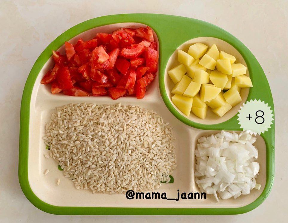 سلام با ماماناي گل ظهرتون بخير امروز هم اومدم با ي ناهار خوشمزه واسه كوچولوهاي نازتون🥰قلب بي رنگمون رنگي كن تا انرژي بگيرم💪🏻❤️ اين دستور رو سيو كن كه حسابي به دردت ميخوره و واسه اونهايي هم كه فكر ميكني دنبال ي ناهار باحالن ارسال كن🌹 كته گوجه🍅(+٨) برنج گوجه پياز سيب زميني اول پياز رو كمي با روغن كنجد تفت دادم بعد بهش سيب زميني هاي نگيني رو اضافه كردم بعد كه ي كم سيب زميني ها سرخ شد ي كوچولو زدرچوبه زدم وگوجه هايي كه پوست كندم و ريز خرد كردم بهش اضافه كردم و در قابلمه رو حدود ي ربع گذاشتم تا گوجه له بشه و آب بندازه بعد برنج رو كه از نيم ساعت پيش خيس كرده بودم به مواد اضافه كردم و به اندازه اي كه ي بند انگشت اب روي برنج باشه اب ريختم و گذاشتم اب ش كه خشك شد در قابلمه رو گذاشتم تا بره دم بكشه نوش جون دلبنداتون❤️😘 از خاصيت گوجه هم كه ديگه نگم واستون تو اسلايد گذاشتم ورق بزنيد😍 #غذاي_كودك #بچه_داری #كته_گوجه #غذاي_كودك_هشت_ماهگى #غذاي_كمكي #كودك_بدغذا #غذاي_بچه #غذاي_كودك_ماماجان