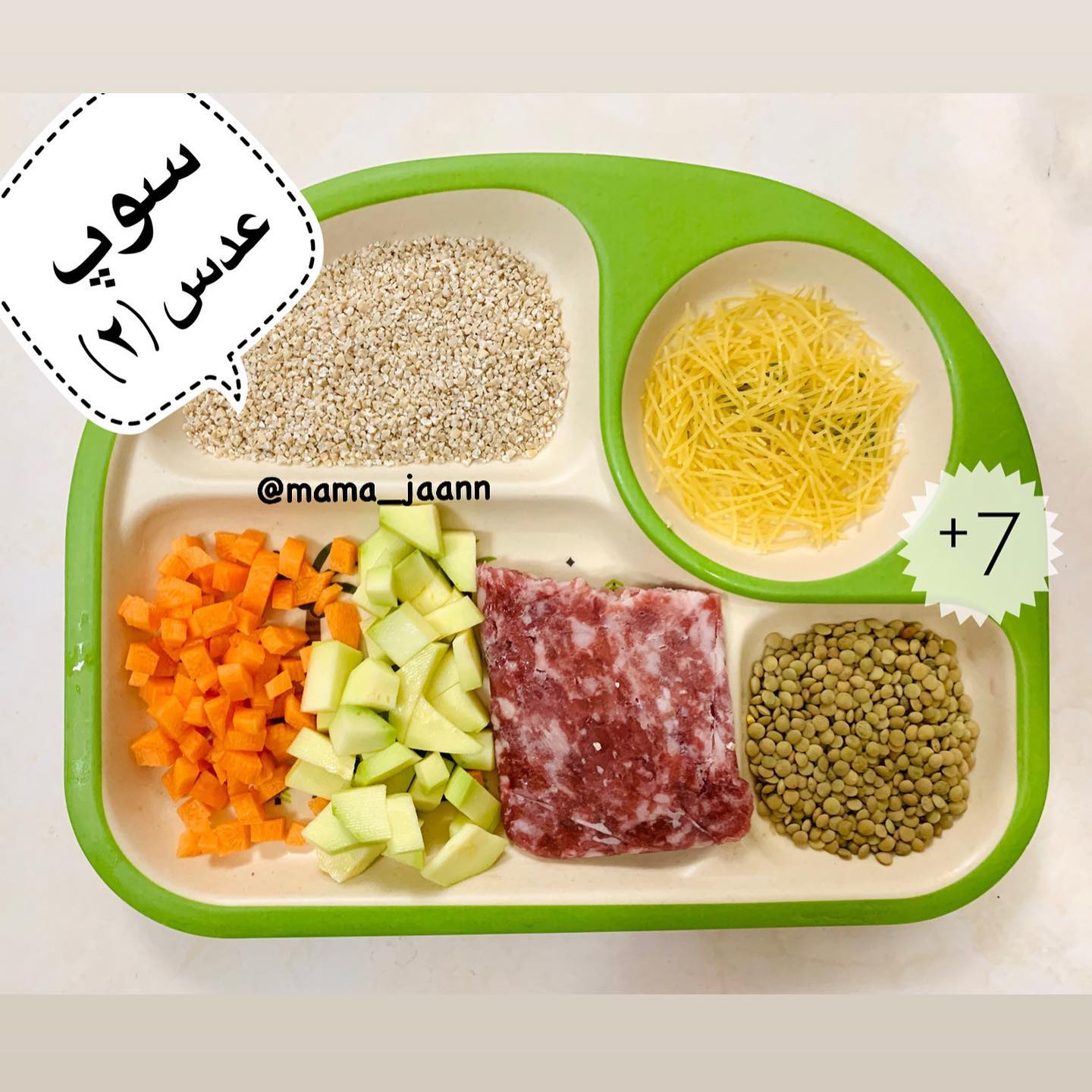 ✋🏻سلام روزتون به خير و خوشي😍😍 اين هم ي سوپ خوشمزه و مقوي پرفيبر واسه بچه هايي كه يبوست دارن😋😋 💠سوپ عدس(+٧)♨️ جو:١/٥قاشق غذاخوري گوشت چرخ كرده:٤٠گرم ورميشل يا ماكاروني:١قاشق غذاخوري عدس:١/٥قاشق غذاخوري هويج:نصف عدد كدو:نصف عدد ✅عدس،گوشت،هويج و كدو رو بزاريد با ي ليوان آب بپزه وقتي كه تقريبا پخت جو و ورميشل رو بهش اضافه كنيد و بزاريد تا آبش كم بشه و غلظتش هر اندازه كه دوست داشتيد برسه. 💯با چند قطره ليمو ترش عالي ميشه😋😋 ❌نكته: ➖از همه مدل جو ميتونيد استفاده كنيد. ➖از هشت ماهگي بجاي حو ميتونيد گندم بريزيد. ➖بجاي گوشت چرخ كرده مي تونيد از گوشت خورشتي يا مرغ هم استفاده كنيد. ➖براي مقوي تر شدن ميتونيد از عصاره قلم يا پاي مرغ يا سويق خانگي استفاده كنيد(هايلايت خودت درست كن آموزش هر سه تاش هست) ➖قبلا ي مدل سوپ عدس گذاشتم اين مدل ديگه به همين خاطر شده شماره٢😅😀(هايلايت غذاي+٨ گذاشتمش) اگه واست مفيد بود لا.يك كن و بفرست واسه دوستات تا اونا هم استفاده كنند🥰 🌷اگر از اکسپلور میای حتما فا..لوکن اینجا قراره کلی چیز یاد بگیریم❤️☀️ @mama_jaann @mama_jaann #غذای_خانگی #غذای_کودک #غذای_کمکی #سوپ_کودک #وزنگیری_کودک