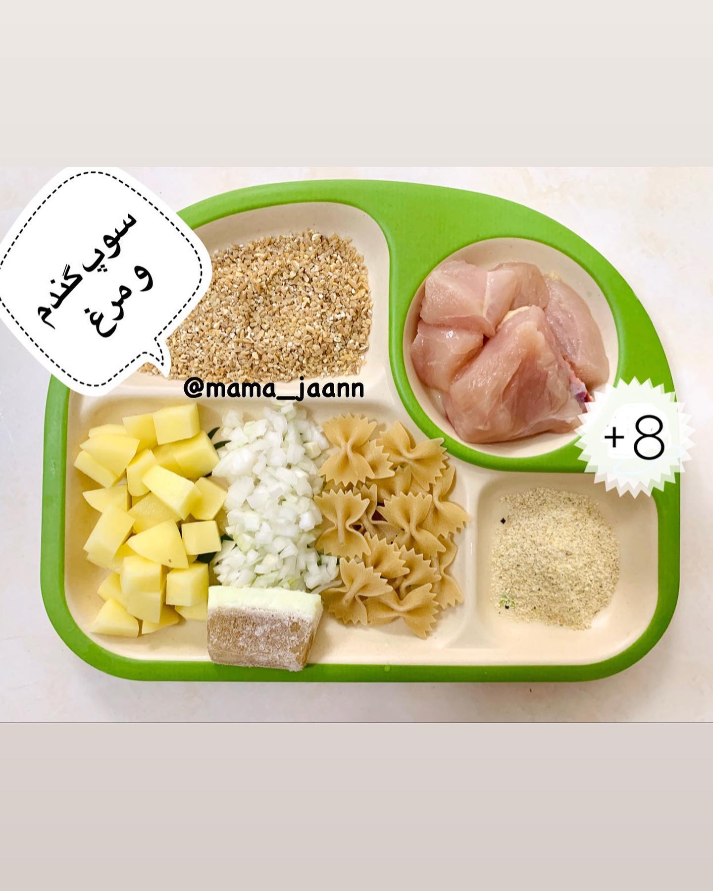 سلام مهربونا شب تون بخير و نيكي😍😍 امشب ي سوپ آوردم خوشمزه و پركالري 😍🥰 سوپ گندم و مرغ(+٨) مرغ:٢تكه گندم بلغور:١قاشق غذاخوري سيب زميني:نصف عدد پياز:نصف كوچك پاستا:٤ تا دونه عصاره قلم:١قالب سويق كامل:١قاشق مرباخوري ✅(سويق رو كه تو پيج اموزشش رو گذاشتم و از ٩ماهگي ميتونيد اضافه كنيد. ✳️پياز و با روغن كنجد ي كم تفت دادم و بعدبهش كمي زردچوبه زدم و مرغ و سيب زميني رو ريختم و كمي تفت دادم و ي ليوان و نيم بهش آب اضافه كردم و گذاشتم ٢٠دقيقه بپزه،گندم رو كه از يك ساعت قبل خيس كرده بودم با پاستا و عصاره قلم به مرغ و سيب اضافه كردم و گذاشتم تا بپزن و ٢٠دقيقه آخر هم سويق رو ريختم داخلش😍😍 🟠خيلي خوشمزه و خوش خوراكه واسه بچه ها البته ميتونيد پاستا و سيب و مرغ رو با پشت قاشق له كنيد تا كوچولوتون راحت بتونه بخوره👌🏻🌹 4-8-15-16-23-42 24:14 #غذاي_كودك #سوپ_كودك #غذاي_كمكي_كودك #غذاي_هشت_ماهگي
