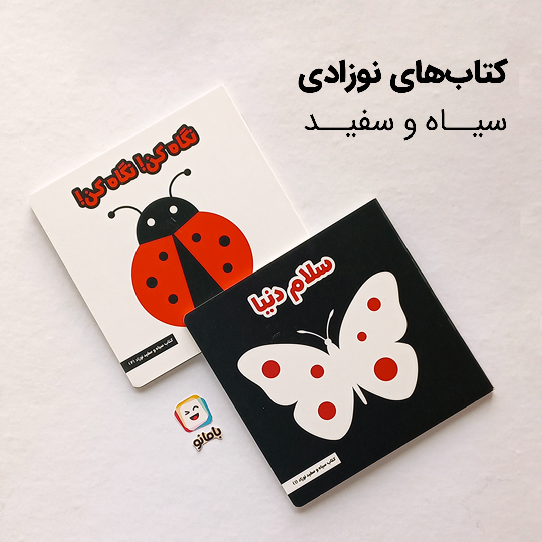هفتههای اول بعد از تولد، چشمان نینیها نمیتونه رنگها رو خوب ببینه. نوزادان نزدیک بینن و دیدشون خیلی تاره و این وضعیت تا حدود شش ماهگی ادامه داره. حالا توی این دوران چی کمکشون میکنه؟ کتابهای سیاه و سفید با کنتراست رنگیِ بالا! این تضاد رنگی باعث تحریک بینایی نینیها میشه و سیگنالهای قوی به مغزشون میفرسته. _______________________ کتابهایی که در تصویر میبینین، کتابهای مقوایی نوزادی از انتشارات موسسه پژوهشی تاریخ ادبیات کودکانه و ۲ جلد داره. قیمت هر جلد: ۳۱۰۰۰تومان فروشگاه: مانا