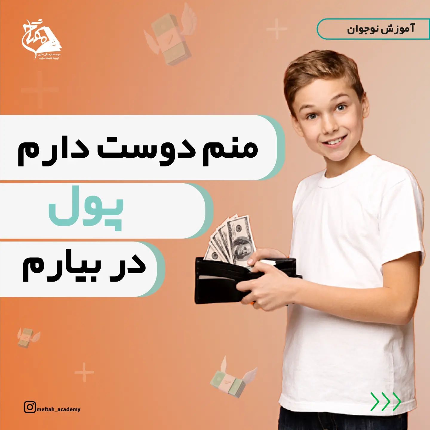 . دوره کسبینو همون اقدام اساسیه که باید برای شروع یه کسب و کار برای نوجوانت انجام بدی😍 . یه مشوق، یه ایجاد انگیزه، یه کلاس اصولی! . کسبینو=کسب و کار نوجوان ویژه نوجوانان ۱۲ تا ۱۶ ساله😍😊 . مراقب باش از ثبت نام جا نمونی😍 . ✔سه جلسه کلاس انلاین اموزش اصول کسب و کار به نوجوان ✔۸، ۱۵و ۱۷ اسفند ✔ساعت ۷تا۸ شب مبلغ: ۱۳۰ هزار تومان . سرفصل های کلاسو توی هایلایت "کسبینو" ببین😊 چیزی تا پایان مهلت ثبت نام باقی نمونده! منتظرت هستییییم😍😍🖐🖐 . مفتاح؛ موسسه فرهنگی تربیت اقتصاد حکیم @meftah_academy #تربیت_اقتصادی #سواد_مالی #سواد_مالی_نوجوانان #کسب_و_کار #کسبوکار #نوجوان_موفق #آینده_روشن #دوره_مجازی #دانشگاه_اصفهان #اصول_کسب_و_کار #موسسه_تربیت_اقتصاد_حکیم #مفتاح