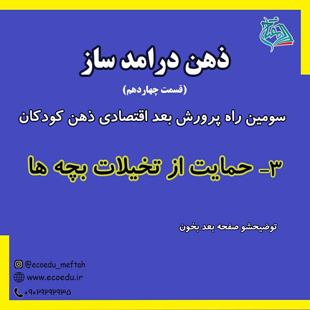 🌹 تا حالا دو راه برای پرورش بعد اقتصادی ذهن کودکان گفتیم: . ۱-ایجاد نمایشگاه تولیدات خانگی ۲-اشنایی با مشاغل . و حالا میریم سراغ سومین راه: ۳-از تخیلات و تفکرات فرزندانتون حمایت کنید😎✌ . توضیحات رو کامل بخونید منتظر نظراتتون هستیم😍 👇👇👇 @ecoedu_meftah @ecoedu_meftah @ecoedu_meftah
