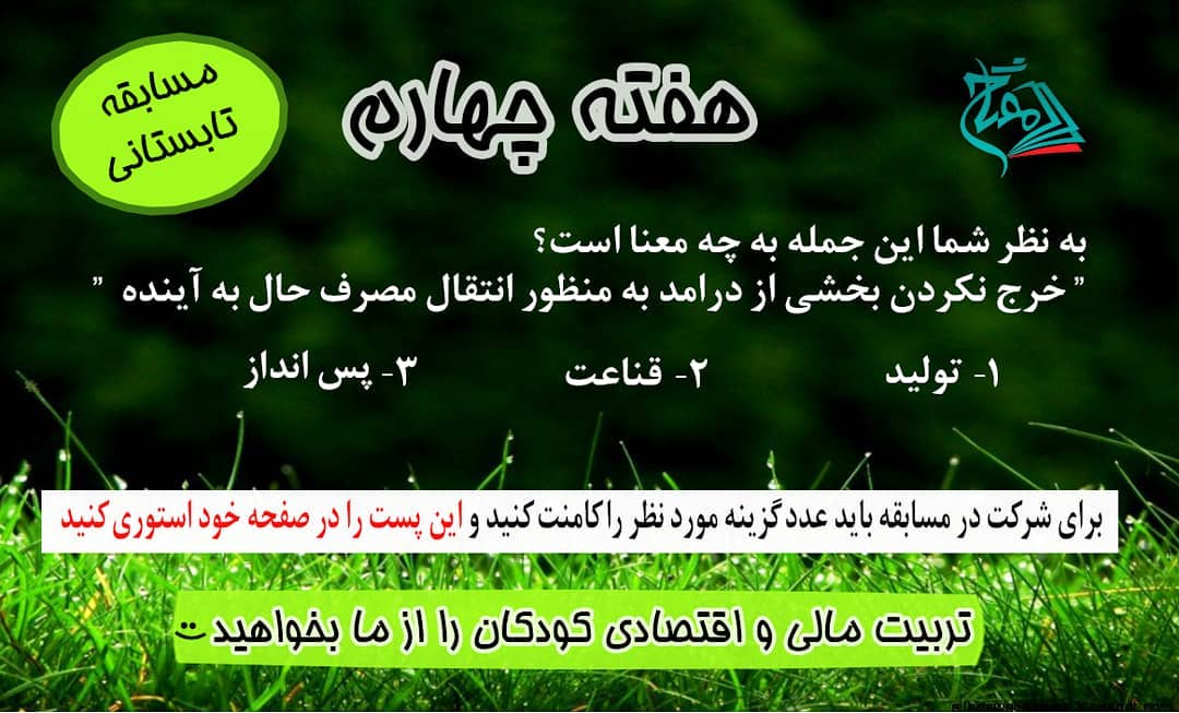 🤗 و می رسیم به اخرین مسابقه تابستانی مفتاح...😍😊 . برای شرکت در مسابقه: ✔عدد گزینه مورد نظر رو کامنت کنید. ✔حتما باید این پست رو توی صفحه خودتون استوری کنید؛ اسم پیج ما روهم توی استوری بنویسد: ecoedu_meftah@ و بعد از کمی بازدید اسکیرین شات استوری رو برای ما ارسال کنید. . از همین الان منتظر دریافت کامنت جواب صحیح و اسکیرین شات استوری هستیم👌😃 .👈هر دو کار رو فراموش نکنید😎 . جوایز: کتاب داستان های تربیت مالی و اقتصادی کودکان . ◀مفتاح؛موسسه فرهنگی هنری تربیت اقتصاد حکیم @ecoedu_meftah #مسابقه#تابستان#هیجان#استوری#فرد#افراد#تربیت_اقتصادی_کودک#تربیت_مالی#سواد_مالی#اقتصاد#موسسه_تربیت_اقتصاد_حکیم #مفتاح