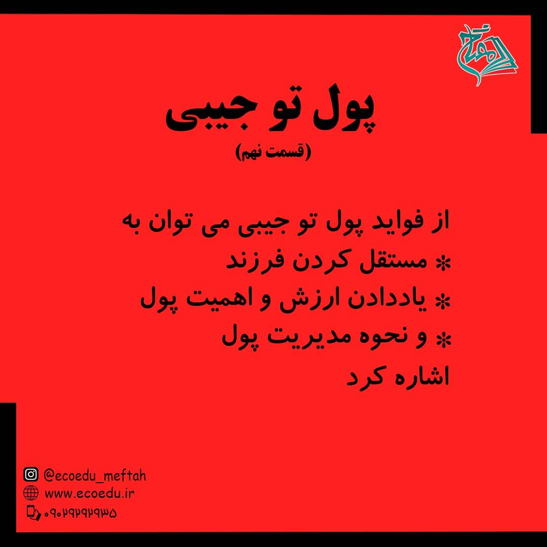 💸 پول تو جیبی "قسمت نهم" . فواید پول تو جیبی😍 . ◀مفتاح؛موسسه فرهنگی هنری تربیت اقتصاد حکیم @ecoedu_meftah #پول#پول_توجیبی #پول_تو_جیبی #پولی#مال#مالی#اقتصاد_خانواده #اقتصاد_کودک #اقتصاد_نوجوان #موسسه_فرهنگی_تربیت_اقتصاد_حکیم #مفتاح