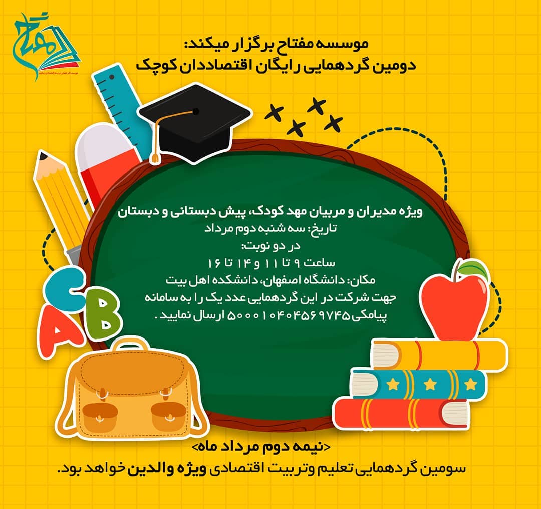 مفتاح/ تربیت مالی و اقتصادی کودک، نوجوان موسسه فرهنگی تربیت اقتصاد حکیم "دانشگاه اصفهان" اینجا فرزندانتان رفتار صحیح مالی و اقتصادی را می آموزند "ناشر تخصصی" تماس: 09029292935