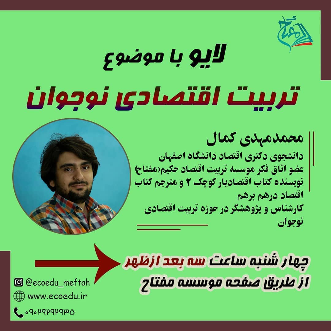 مفتاح/ تربیت مالی و اقتصادی کودک، نوجوان موسسه فرهنگی تربیت اقتصاد حکیم "دانشگاه اصفهان" اینجا فرزندانتان رفتار صحیح مالی و اقتصادی را می آموزند "ناشر تخصصی" تماس: 09029292935