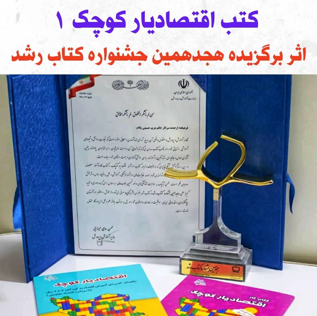 #جشنواره_رشد❤ نتیجه سال ها تلاش در حیطه آموزش مفاهیم اقتصادی به شیوه صحیح به کودکان را با گرفتن این تندیس دیدیم🌺 اسلایدهای بعدی فیلم جشنواره و سایر تصاویر تندیس است. . 🏅کتاب اقتصادیارکوچک ۱ ویژه تدریس مربیان و کتاب کار اقتصادیارکوچک ۱ ویژه تمرین دانش اموزان، دو کتابی هستند که در هجدهمین جشنواره کتاب رشد کشور تندیس کتاب برگزیده در حیطه اقتصاد را گرفتند. به تاریخ ۲۳دی ماه ۹۹ . 📝نویسندگان: دکتر مهدی طغیانی خانم مریم حسینی بالام خانم سمیه مهدوی . ⏪ویژه گروه سنی ۶تا۹ سال مناسب برای تدریس در کلاس های اول،دوم و سوم دبستان . 👈مدیر یا معلم مدرسه هستید؟ شما هم میتوانید با استفاده از بسته مربی و دوره های تربیت مربی ما، و همچنین بسته های دانش اموزان، بخشی از زنجیره آموزش مفاهیم اقتصادی در کل کشور باشید.🌺 کافیست به دایرکت پیام دهید و با ما ارتباط بگیرید . 🚩مفتاح؛ موسسه فرهنگی هنری تربیت اقتصاد حکیم @ecoedu_meftah #جشنواره_رشد#اثر_برگزیده#هجدهمین_جشنواره_کتاب_رشد#آموزش_و_پرورش#economics#دانشگاه_اصفهان#مرکز_رشد#teaching_economics#شرکت_خلاق#مدیران_مدارس#مدارس#مربیان_مدارس#دوره_تربیت_مربی_اقتصاد#آموزش_اقتصاد_به_کودکان#اقتصادیار_کوچک#رتبه_اول#تربیت_اقتصادی_کودکان_و_نوجوانان#مفتاح#دکتر_مهدی_طغیانی#مریم_حسینی_بالام#موسسه_فرهنگی_تربیت_اقتصاد_حکیم