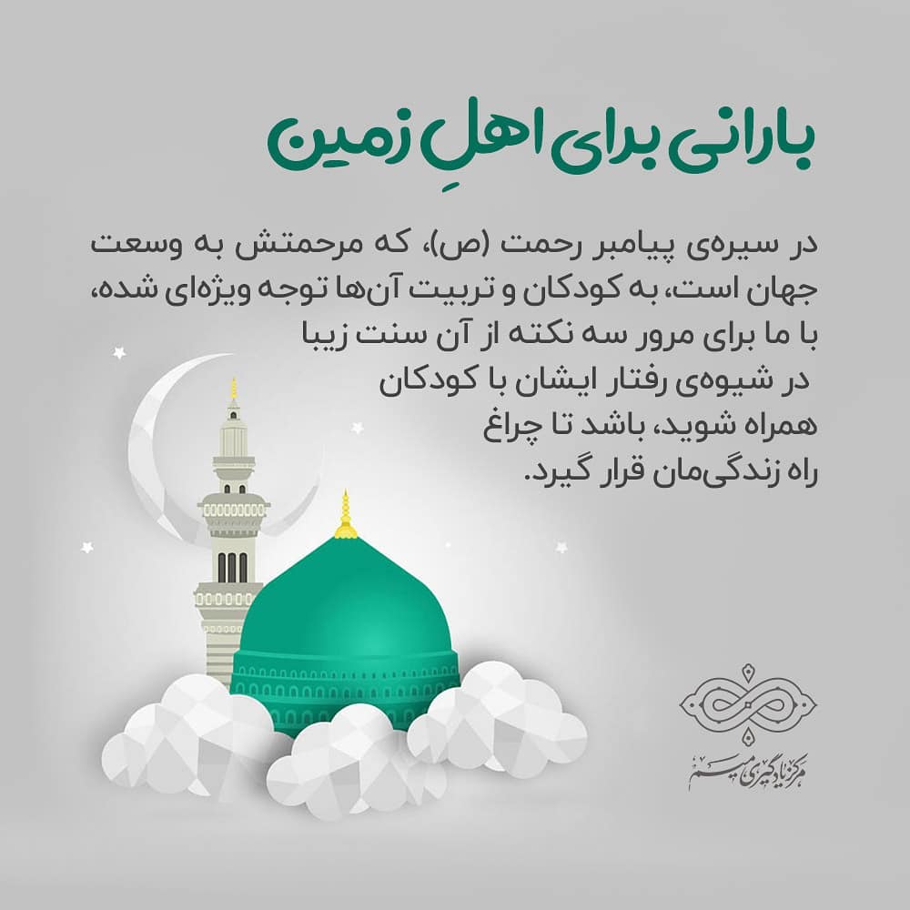 ⬛ متن کامل #مقاله «بارانی برای اهلی زمین» که به بررسی سه ویژگی احترام، عدالت و بازیکردن در تعامل رسول اکرم با کودکان میپردازد در لینک: 🌐 www.mimttc.ir #پیامبر #تعامل_با_کودک #احترام #عدالت #بازی_با_کودکان #رحلت |مرکز یادگیری میم 🆔 @mimTTC