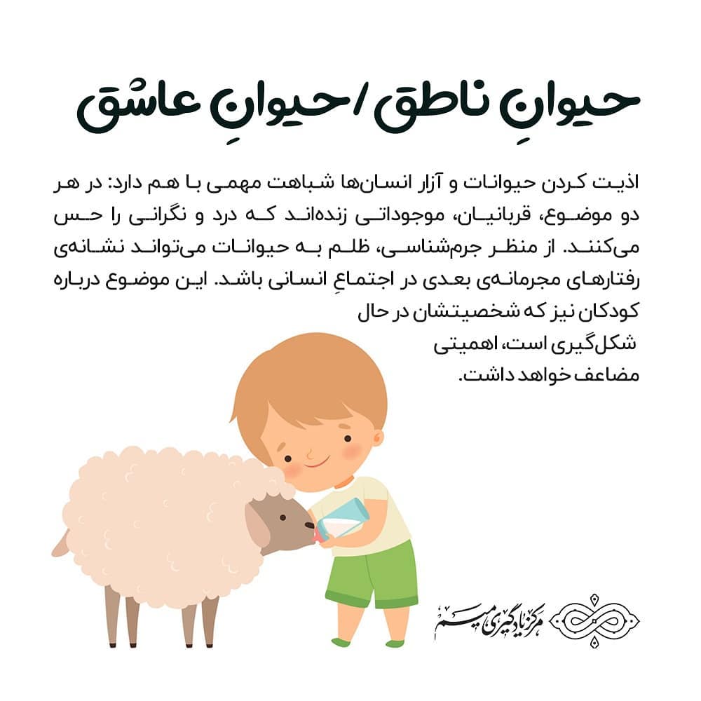 🔸حیوان ناطق / حیوان عاشق 📎 برای مطالعه متن کامل مقاله به وبسایت میم مراجعه کنید. 🌐 mimttc.ir #حقوق_حیوانات #تربیت_کودک #تربیت_فرزند #آزارحیوانات #جرم_شناسی #مجرم #پرخاشگری #ناهنجاری #خشونت #شخصیت_کودکان #حقوق #حیوان #حیوانات #طبیعت