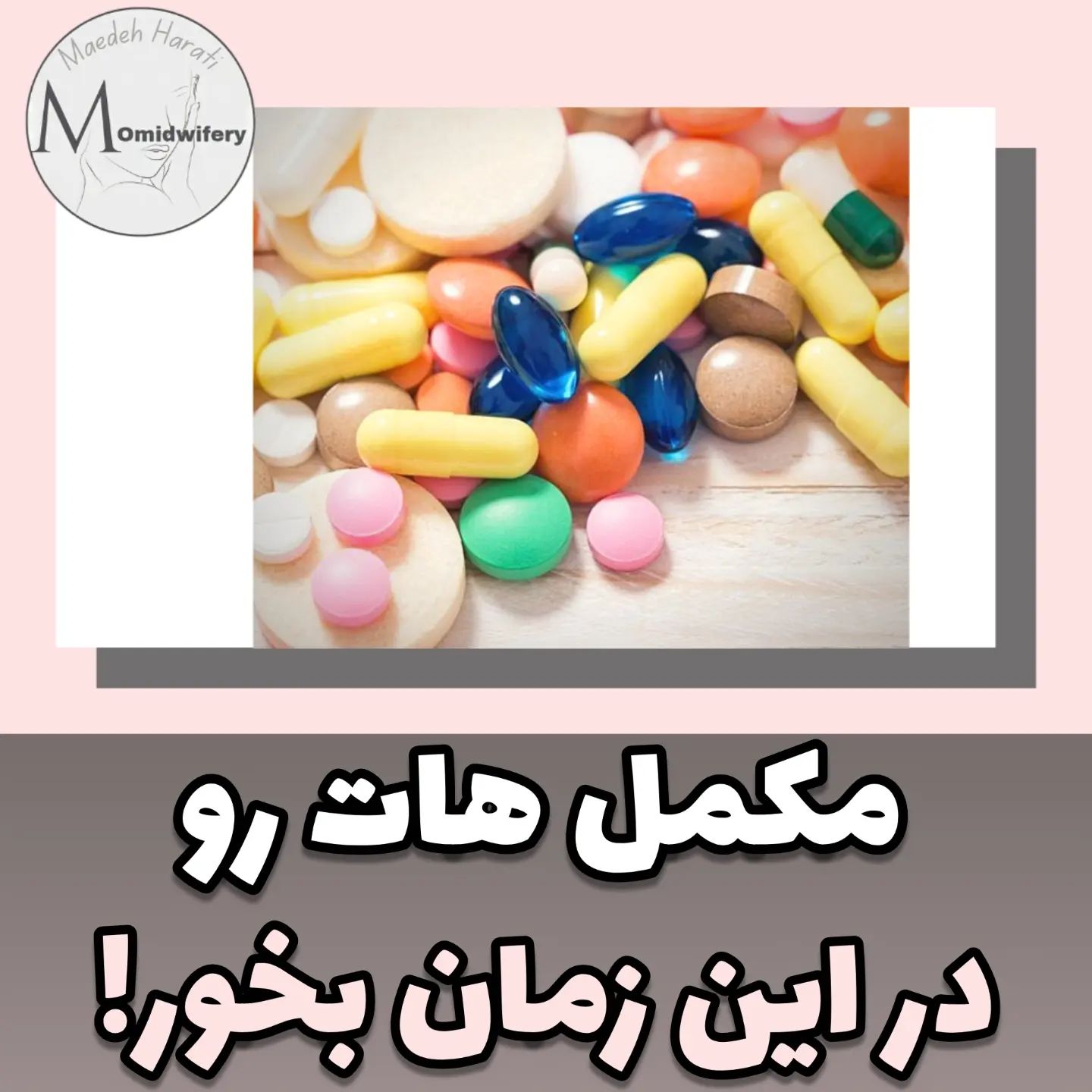 . سلام دخترا💕 شبتون آروم😍 میدونستین هر مکملی برای جذب بهتر و عوارض کمتر نیاز داره در زمان مشخصی از روز خورده بشه؟ تو این پست بهت گفتم که چه زمانی باید مکمل هاتو مصرف کنی😌 پس سیوش کن چون همیشه لازمت میشه🥰 راستی، اگه سوالی داشتی تو کامنتا بپرس😍💕 مرسی از حمایت همیشگیییت😚 #زمان_مصرف_مکمل_ها #مکمل_بارداری #قرص_آهن #مصرف_مکمل #مولتی_ویتامین_روزانه #مولتی_ویتامین #زمان_مصرف_ویتامین #زمان_مصرف #مشاوره_مامایی #مامایی_به_زبان_ساده #اسیدفولیک #اسیدفولیک_دربارداری #ویتامینهای_ضروری #ویتامین_c #ویتامین_d #ویتامین_b #ویتامین_آ #ویتامین_مو #ویتامین_ب #مکمل_کلسیم