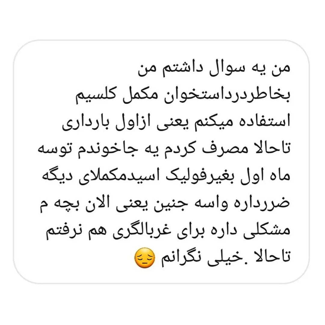 خیلی از خانمها در این مورد سوال دارند 👇. . 📌شما در سه ماهه اول چه مکمل های مصرف کردید؟؟؟ 📍در سه ماهه اول خوردن اسید فولیک و ویتامین دی فقط ضروری هستش و مکمل مولتی ویتامین/کلسیم /آهن و امگا بهتر از هفته ۱۶ بارداری شروع بشه . . 📍البته خوردن مکمل کلسیم در سه ماهه اول هم گاها داده میشه و موردی برای جنین ایجاد نمیکنه . . . مشاوره زنان/بارداری/زایمان/زناشویی تعیین جنسیت پسر و دختر و دوقلویی 👼 ویزیت آنلاین/حضوری/تلفنی درمان تخصصی واژینیسموس @moshaver.mama . . . #مکمل_بارداری #دارو #مکمل_آهن #کلسیم #مکمل_کلسیم #سه_ماهه_اول_بارداری #