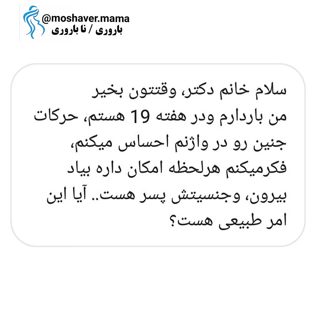 📍خیلی از مامانا در این مورد سوال دارند . 🔷️ یک نکته مهم اینه که زیر ۲۰ هفته حد رحم زیر ناف هستش و حرکت های جنین شما پایین شکم احساس میشه پس نگران نباشید 🙋♀️ 🔷️بعد هفته ۲۰ بارداری کم کم رحم بزرگ میشه و بالای ناف میاد و اونوقت ممکن شما حرکت جنین بالاتر یا تو پهلو ها حس کنید . 🔷️اگر تکون های جنین و تو واژن خودتون حس کردید بهتر یه سونوگرافی جهت بررسی وضعیت جنین و سایز دهانه رحم بدید . 📌شما تو دوران بارداری حرکت جنین و بیشتر پایین شکم یا پهلوها و یا بالای شکم احساس میکنید ؟؟🤰 @moshaver.mama . مشاوره_زنان_بارداری_زایمان تعیین جنسیت جنین 👶 ویزیت آنلاین/حضوری/تلفنی @moshaver.mama . . #جنین #هفته_۴۰_بارداری #هفته_به_هفته_بارداری #هفته_۲۰_بارداری #سه_ماهه_اول_بارداری #حرکت_جنین