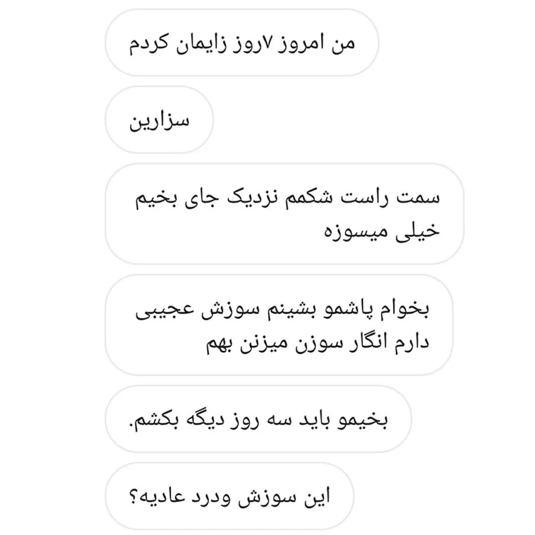 در مورد سوزش و درد در محل بخیه های سزارین خیلی سوال شده 👇 . 🔻سوزش و درد در محل بخیه های سزارین طبیعی هستش و ممکن تا مدتها ادامه پیدا کنه . علت 👇 🔻از جای که تیغ جراحی وارد پوست بدن میشه و برش سزارین زده میشه در اون قسمت شکم درد و سوزش بیشتری احساس میشه که با تمرینات ورزشی این سوزش قابل برطرف شدن هستش . . 🟥 نکته 👇 در صورت وجود ترشحات بد بو و عفونی یا خون آبه در محل بخیه سزارین سریعا به پزشک یا ماما مراجعه کنید در این موارد درمان با آنتی بیوتیک توصیه میشه . . 📍کیا زایمان سزارین داشتن ؟؟؟ 📍سوزش و درد در ناحیه بخیه سزارین و داشتید؟؟؟. .. . 📌مشاوره_زنان_بارداری_زایمان 📌تعیین جنسیت پسر /دختر 📌ویزیت آنلاین _حضوری _تلفنی @moshaver.mama . . #سزارین #سزارین_یا_زایمان_طبیعی #بخیه #بخیه_زایمان #بخیه_سزارین #عمل_جراحی #سوزش