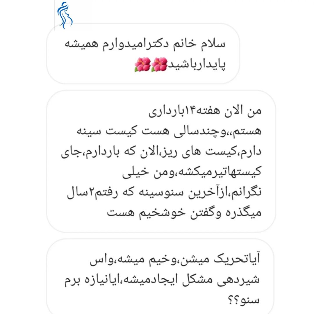 ◀️اغلب خانمها که قبل بارداری کیست سینه دارن ممکن در دوران بارداری بخاطر افزایش هورمونها درد سینه ها بیشتر بشه این درد و تورم سینه تا حدودی طبیعیه ولی اگر 👇 🔷️ درد شدید و تورم و قرمزی در ناحیه سینه ها وجود داشت اغلب سونوگرافی توصیه میشه . 🔷️ اغلب توده های سینه در دوران بارداری خوش خیم و شامل👇 📍کیست ها 📍ادنوم 📍گالاکتوسل ها ◀️و در مواردی که توده خوش خیم باشه اقدام خاصی صورت نمیگیره و شیردهی هم مانعی نداره . 📌اگر در آین مورد سوالی دارید کامنت بزارید 👇 @moshaver.mama . . #کیست #کیست_سینه #فیبروکیستیک_پستان #درد_پستان #کیست_مویی