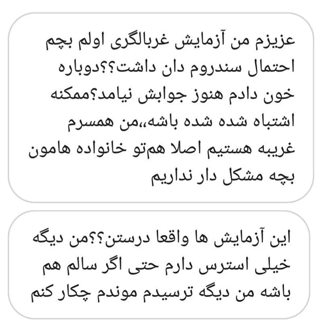سلام دوستان 🙋♀️ 🟣شاید یکی از مهمترین دغدغه خانمهای باردار نتایج آزمایشات غربالگری باشه . 🔴باید بگم که احتمال خطا و اشتباه تو آزمایش غربالگری هست پس اگر مسئله خاصی تو جواب تست تون بودش نگران نباشید. و آزمایش سل فری یا امینوسنتز و انجام بدید . ◀️دقت آزمایش سل فری و امینوسنتز بالاست و با درصد خیلی بالایی نتیجه درست و نشون میده و اگر جواب آزمایشات بعدی موردی نداشت کاملا خیالتون راحت باشه که هیچ مشکلی نیست . در موارد زیر سل فری یا NIPT انجام میشود 👇 🔸️نتیجه مثبت غربالگری 🔸️سن بالای مادر به هنگام بارداری بالاتر از ۴۰ سال باشد 🔸️میزان (NT (Nuchal Translucency مساوی و بیشتر از ۳میلی متر باشد 🔸️سابقه بارداری قبلی با تریزومی ۲۱, ۱۸ و ۱۳ . . 📌برام کامنت بزارید که آزمایش غربالگری و انجام دادید ؟؟؟ 📌و کیا نتیجه تست اولیه مورد داشت و آزمایش تکمیلی انجام دادن . . مشاوره زنان/زایما/بارداری #تعیین_جنسیت_جنین #ویزیت_تلفنی #ویزیت_آنلاین #ویزیت_حضوری_در_مطب_۵۰_هزار_تومان