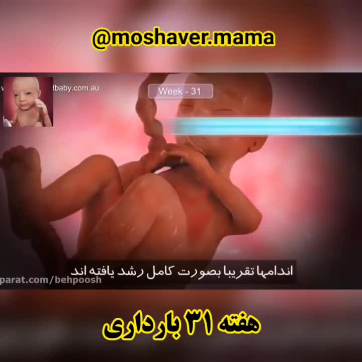 ◀️در هفته های ۳۱ و ۳۲ مغز و ریه جنین کاملا تکامل پیدا میکنه و بتدریج جنین آماده تولد میشه 👼. 📌البته ریه ها هنوز به تکامل بیشتری نیاز دارند که طی هفته های آینده صورت میگیره . ⬅️ تغذیه شما در این دوران بشدت برای افزایش وزن جنین تاثیر گذار است👼سعی کنید رژیم غذایی مقوی داشته باشید تا جنین بهترین وزن گیری و داشته باشد . 🔷️کیا آلان ماه هشتم بارداری هستن و وزن جنینن تون در سونوگرافی چقدر هستش ؟؟؟؟ آیا تو وزن نرمال هستش ؟؟👇 . . . مشاوره زنان/بارداری/زناشویی تعیین جنسیت جنین 👼 ویزیت /حضوری/تلفنی/آنلاین 📌 . @moshaver.mama . . . #جنین_دختر #جنین_پسر #جنین_کودک_مادر #جنین_هفته_به_هفته #دوران_جنینی