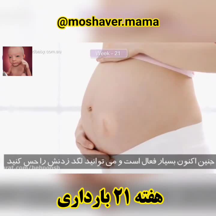 اینم پست هفته ۲۱ و ۲۲ بارداری 👼 📌اول بمن بگید کیا این هفته بارداری و دارن الان تجربه میکنن 🙋♀️ و اینکه حرکات جنین و حس میکنید 😍؟. . 🔶️نکته مهم این کلیپ اینه که جنین با شروع هفته بیستم صدای شمارو میشنوه پس از این هفته برای جنین تون آواز بخوانید براش حرف بزنید و کلی باهم دوست بشید 😍. . مشاوره زنان /بارداری/زایمان تعیین جنسیت جنین ویزیت حضوری /تلفنی/آنلاین @moshaver.mama . . . #هفته_های_بارداری #هفته_به_هفته_بارداری