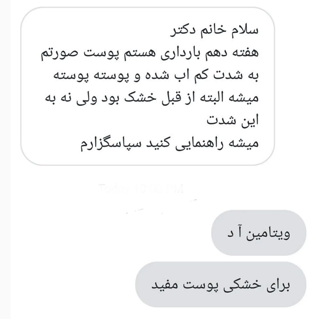 تو دوران بارداری خشکی پوست کاملا طبیعیه 👌 ◀️مخصوصا نواحی شکم و دستها که پوست بشدت خشک میشه و پوسته پوسته میشه و دچار خارش شدید میشه 👈پماد ویتامین آ د برای رفع خشکی پوست و برطرف شدن خارش خیلی تاثیر گذار هستش ✅ اگر پوست صورت دچار خشکی بشه میتونید از کرمهای مرطوب کننده حاوی ویتامین ای هم استفاده کنید. . 🔴شما هم در دوران بارداری این مشکل و داشتید؟؟؟؟ . . مشاوره زنان /بارداری/زایمان 🌹 تعیین جنسیت نوزاد 👶 ویزیت حضوری /تلفنی /آنلاین @moshaver.mama . . . . #خشکی_پوست #خارش_پوست #خشکی_پوست_دست_و_صورت