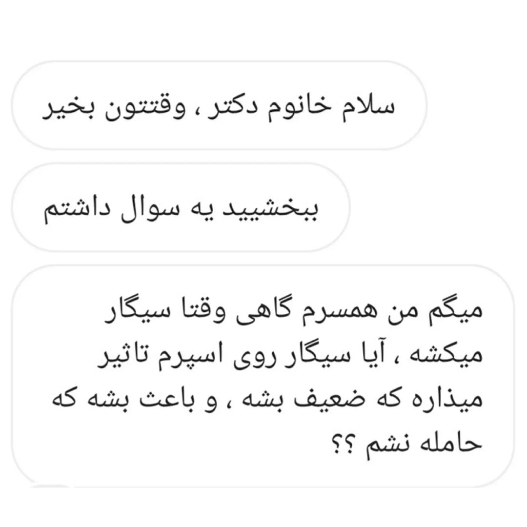 خیلی از زوجین سوال میپرسن که آیا مصرف دخانیات مخصوصا سیگار روی اسپرم تاثیر منفی میزاره ؟؟؟ 📍باید بگم بله😮 🔷️سیکار کشیدن باعث کاهش غلظت اسپرم، حرکت اسپرم، مورفولوژی طبیعی اسپرم و به طور کلی کاهش کیفیت مایع منی مردان و همچنین افزایش آسیب به DNA اسپرم می گردد. 🔶️مصرف سیگار می تواند سبب خرد شدن DNA اسپرم مردان شود. آسیب DNA اسپرم می تواند با مشکلات باروری، اختلال در رشد جنین و لانه گزینی و همچنین افزایش سقط جنین همراه باشد. 📍پس اگر تصمیم به بارداری دارید از سه ماه قبل باید دخانیات و حذف کنید ✋ . 📌اگر در مورد این پست سوالی دارید کامنت بزارید جواب میدم 👇😊. @moshaver.mama . . مشاوره_زنان_بارداری_زایمان تعیین جنسیت جنین 👶 ویزیت آنلاین/حضوری/تلفنی @moshaver.mama . . . #سیگاری #سیگار #اسپرم_ضعیف #تخمک_گذاری #اسپرم_مردان #باروری #باروری_مردان #باروری_زنان #