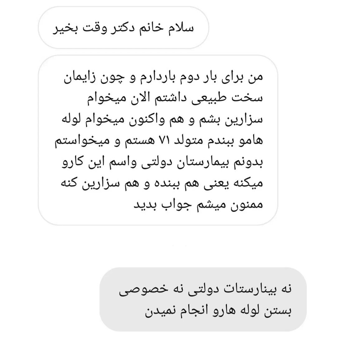 سلام روز آدینه تون بخیر 🌹 خیلیا میان مطب یا درمانگاه و میگن میخواییم لوله هامونو ببندیم چکار کنیم . ⬅️دقیقا هفته قبل یک بیمار سی ساله داشتم که دو فرزند داشت و اصرار میکرد که براش نامه بدم و معرفیش کنم به بیمارستان برای بستن لوله . . 🔷️در حال حاضر تحت هیچ شرایطی بستن لوله و وازکتومی انجام نمیشه مخصوصا اگر فرد زیر ۴۰ سال باشه . . 🔶️فقط در صورتی مرکز بهداشت نامه میده که خانم بالای ۴۰ سال باشه و بیشتر از ۵ فرزند داشته باشه یا بیمار مشکل زمینه ای حاد مثل ناراحتی قلبی یا دیابت یا فشارخون بالا داشته باشه در غیر اینصورت نامه ارجاع داده نمیشه . یک توصیه مهم👇 خیلی از زوجین جوان بمن مراجعه میکنن و اصرار دارن خودشون یا همسرشون تابکتومی(بستن لوله) یا وازکتومی انجام بدن 🔴من بعنوان یک ماما به زوجین جوان توصیه میکنم تحت هیچ شرلیطی،اینکارو نکنن مخصوصا اگر خانم زیر ۴۰ سال هست و یک یا دوتا بچه داره . خیلی روشهای جلوگیری مطمئن وجود داره که میتونن با خیال راحت از اونا استفاده کنن من به بیماران خودم پیشنهاد میدم چنانچه اصلا بارداری نمیخوایید داشته باشید ◀️از دو روش جلوگیری همزمان استفاده کنید. امیدوارم که هیچ خانمی بارداری ناخواسته و تجربه نکنه🌹. . . . مشاوره زنان /بارداری 🌹 ویزیت آنلاین/تلفنی /حضوری تعیین جنسیت جنین @moshaver.mama . . . #بارداری_ناخواسته #حامله_شدن #بستن_لوله_های_رحم #توبکتومی #وازکتومی #حاملگی_سلامت #روش_جلوگیری_از_بارداری