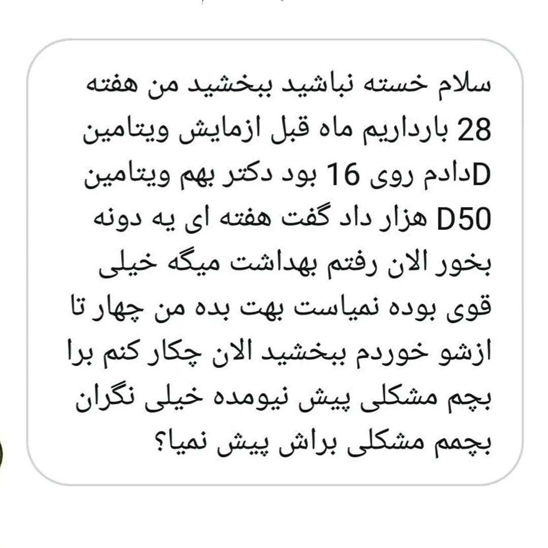 در دوران بارداری مکمل ویتامین دی از ابتدای حاملگی تجویز میشه 👇 📌مصرف مکمل ویتامین دی ۵۰ هزار در دوران بارداری مجاز نیست ⚠️ . ⬅️و فقط قرص ویتامین دی ۱۰۰۰ بصورت روزانه تجویز میشه . ⬅️در مواردی که کمبود ویتامین دی شدید هستش از فرم ویتامین دی ۲۰۰۰ هم گاها استفاده میشه . . 📌شما از ماه چندم بارداری مکمل ویتامین دی براتون تجویز شد ؟؟؟ . . . مشاوره زنان/ باردار ی/زایمان🌹 تعیین جنسیت جنین 👼 ویزیت/حضوری/تلفنی/آنلاین 📌 درمان تخصصی و قطعی واژینیسموس . @moshaver.mama . . . #مکمل_بارداری #مکمل_ویتامین_دی #ویتامینd