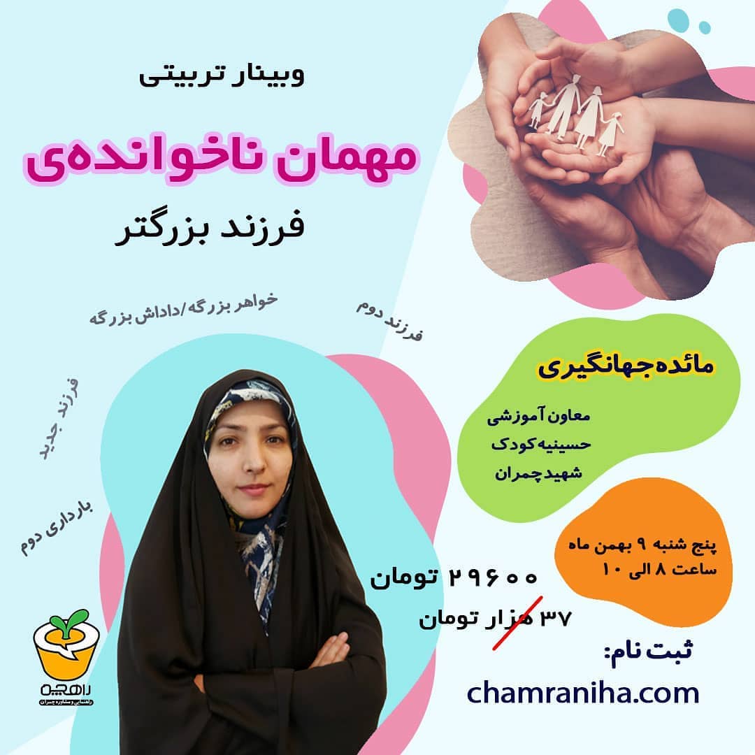 📣 ❗️قراره یه نوزاد جدید به خانواده تون اضافه بشه؟ 👶🏻نمیدونین چه جوری به فرزند اول تون خبر بدین؟ ❗️خونه تون چه تغییراتی باید بکنه؟ وبینار مهمان ناخوانده ی فرزند دوم پنج شنبه ۹ بهمن ماه هزینه کارگاه: ۳۷ هزار تومان تخفیف تبلیغ زودهنگام 👈🏻 *۲۹۶۰۰ تومان* فقط تا سه شنبه اطلاعات بیشتر و ثبت نام👇🏻 chamraniha.com #وبینار_تربیتی #فرزند_دوم #بارداری_دوم #راهچه #مشاوره_کودک #کودک #روانشناسی_کودک