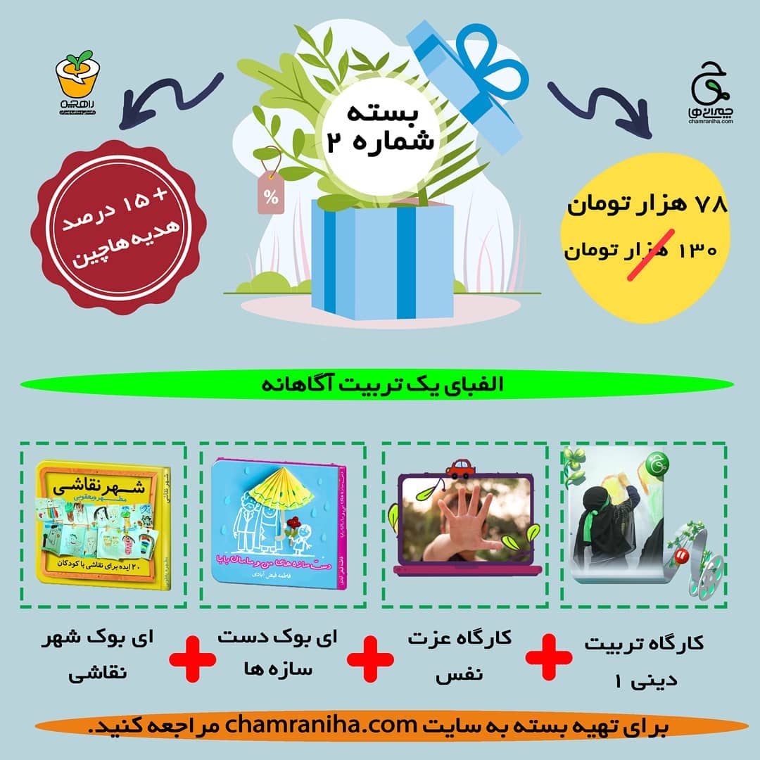 هنوز الفبای یه تربیت آگاهانه رو نمیدونی؟؟؟😳👇 "بسته ی ویژه شماره ۲ " مخصووووص شما مامان ها و معلم هایی هست که با بچه های زیر۷ سال سرو کار دارید❗❗❗ . میدونین تو این بسته ی عیدانه چه خبره؟؟🤔 . 🔸️کارگاه تربیت دینی ۱ 🔹️کارگاه عزت نفس ➕کتاب الکترونیکی دست سازه ها ➕کتاب الکترونیکی شهر نقاشی با این بسته عیدانه، میتونید اول از همه برای رشدخودتون و بعد تربیت درست بچه ها، یه قدم کوچیک اما مهم بردارید 🤗 . ⭕برای تهیه، فقط کافیه به لینک در بیوی صفحه یا سایت چمرانی ها سربزنید👇 Chamraniha.com . #تربیت_فرزند #تربیت_کودک #تربیت_آگاهانه #والدین_آگاه #والدگری #معلم_حرفه_ای #عزت نفس#تربیت_دینی #نقاشی#کاردستی