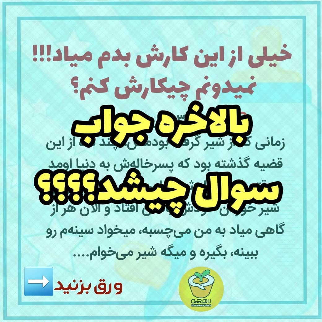 سوال دو پست قبل رو یادتونه⁉️🤔 بفرمایید اینم جوابش😊 فقط اول توصیف و ریشه رو بخونید ⬇️بعد ورق بزنید و راهکارها رو بخونید 😇👆🏻 . 🟩توصیف مسئله: در برخورد با پسر ۳ سال و چهارماههای که با دیدن شیرخوردن نوزاد، تقاضای شیرخوردن و دست زدن به عضو مادر دارد، چه کار باید کرد؟ 🌱ریشه مسئله: ۱. به طور طبیعی با ورود فرزند جدید به هر خانواده، یک سری کنجکاوی ها برای بچه های بزرگتر به وجود می آید. ۲. حساسیت و ابراز ناراحتی شما باعث طولانی شدن این قضیه شده است؛ چون پسر شما موقع تولد پسرخاله اش، حدود ۲ سال داشته و اکنون ۳ سال و ۴ ماهه است و زمان زیادی گذشته است. ۳. هر کودکی بعد از بحران از شیر گرفته شدن، نیازمند ابراز احساسات و توجه از جانب والدین بخصوص مادر میباشد. کودک شما هم نیاز زیادی به توجه و ابراز علاقه دارد. ۴. یک واقعیتی که هست این است که فرزند شما خیلی کوچک است و بعضی از بچهها لمسی هستند و دوست دارند بسیار در آغوش گرفته شوند و بوسیده شوند. . 🔴این پست رو سیو کنید و برای مامان ها بفرستید!!! ❗❗❗راستی یادتون نره پنجشنبه ۶ خرداد وبینار "منهای شیر" داریم و اگه تا فردا ثبت نام کنید با ۲۵٪ تخفیف میتونید شرکت کنید🤗 برای کسب اطلاعات بیشتر از کارگاه به پست قبل و استوری ها سربزنید🤩 . #از_شیر_گرفتن #شیردادن_به_بچه #شیر_مادر #منهای_شیر #تربیت_فرزند #والدین_آگاه #والدگری#کارگاه_تربیتی #کارگاه_مجازی