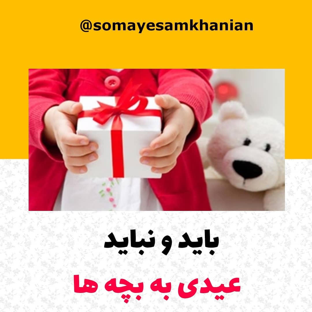 چند پیشنهاد برای عیدی کرونایی🌸 سلام سلام🌹🌹 امیدوارم حالتون آخر سالی عالی باشه. 😍 ❎یکی از رسم های قشنگ عید نوروز عیدی دادنه. امسال به خاطر شرایط رفت و آمدها مثل سال های قبل نیست. تو همون رفت و آمدهای محدود بچه ها عیدی می گیرن. یه سری نکات مهم رو تو اسلاید توضیح دادم که باید تو عیدی دادن حتما رعایت کرد. چه با عنوان والدین چه به عنوان کسی که عیدی می دیم. ✅چند تا ایده برای عیدی تو شرایط کرونایی 1️⃣ به بچه ها با مشورت والدین کلاس آنلاین عیدی بدید. 2️⃣ بسته بازی فکری یا کتاب به آدرس خونشون سفارش بدید. 3️⃣ هماهنگ کنید لذت شادی و تفریح در یک شهربازی یا مجموعه بازی با رعایت پروتکل ها رو مهمان شما باشن. ❓بهترین و خاطره انگیزترین عیدی که گرفتید چی بود؟ ❓پیشنهاد شما برای عیدی کرونایی چیه؟ ممنونم که همراهم هستید و لایک می کنید. 🙏🌹 #نوروز_باستانی#نوروز_مبارک#عیدی #عیدی_کودکان#بخشش#عیدنوروز#نوروز1400 #مهربانی#ایده_عیدی_کودکان #مهارت_اجتماعی_کودکان#مهارت_زندگی_کودکان #فرزندپروری_آگاهانه #فرزندپروری_مثبت #فرزندپروری#تربیت_فرزند #تربیت_کودک #والدین_آگاه#والدین_موفق#کودک_کودکانه #کودک_سالم#کودک_خلاق #کودک_شاد #مشاور_کودک #سمیه_سامخانیان