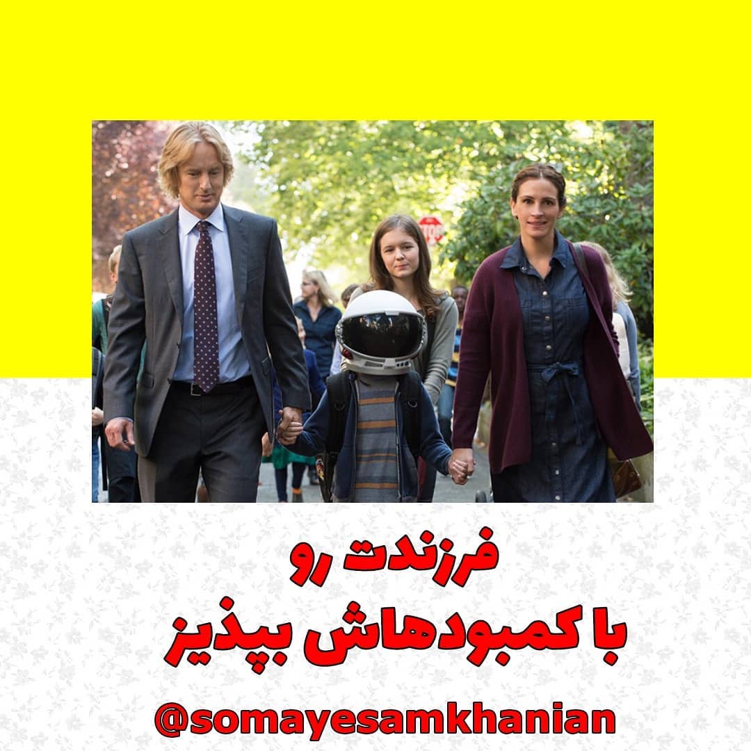 کپشن مهم سلام امیدوارم حالتون خوب باشه🌹🌹 حس ارزشمندی و عزت نفس مهم ترین دارایی هر کسیه. ✅خیلی مهمه ما خودمون رو با همه ی ویژگی های خوب و بدمون بپذیریم، اینجوری آرامش داریم. ◀️سال های طلایی کودکی نقش مهمی در ایجاد حس عزت نفس دارن. پدر و مادر هم مهم ترین کسایی هستن که می تونن خودباوری رو به فرزندشون منتقل کنن. 🎥فیلم wonder (اعجوبه) به خوبی این جو حمایتی اعضای خانواده رو نشون می ده. خانواده ی اگی یک کار بزرگ کردن. آگی رو با تمام نقص هاش پذیرفتن. پذیرش به اون ها کمک کرد بهتر با این مسئله کنار بیان، دلگرمی بدن و آگی رو تشویق کنن تا توانایی هاش رو شکوفا کنه و از همه مهم تر آگی هم خودش رو بپذیره. 📝به نظر شما والدین چه جوری می تونن خودپذیری رو به فرزندشون یاد بدن؟ ممنون می شم این پست رو با والدین دیگه هم به اشتراک بذارید🙏🙏 خودتون لایک دارید. ❤️❤️❤️ ارادت💐💐 #عزت_نفس#اعتمادبنفس#اعتماد_بنفس #اعتماد_به_نفس#اعتمادبه_نفس #اعتمادبنفس_خودباوری_عزت_نفس #خود_باوری#پذیرش#خود_پذیری #والدین_آگاه#باور_مثبت #خودباوری#خانواده_صمیمی #خانواده_شاد #مادر_آگاه#پدر_آگاه#پذیرش_نقصها #کودک_شاد #مشاور_کودک #سمیه_سامخانیان