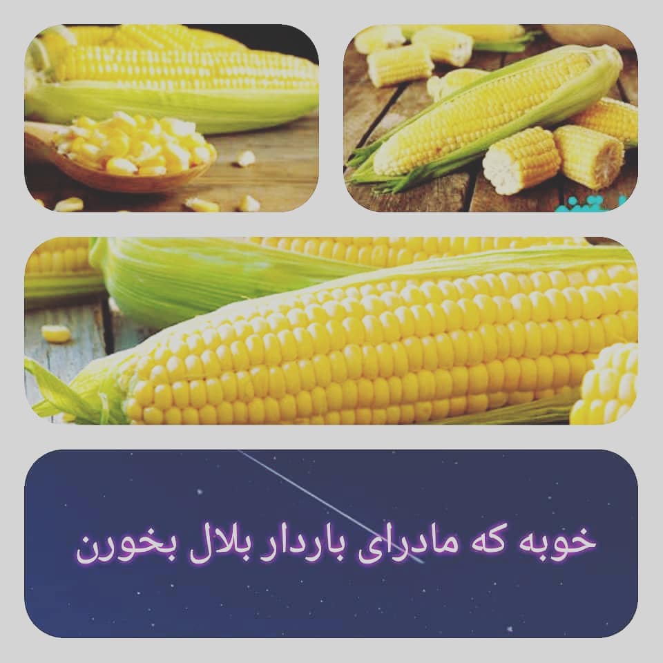 💎💎💎💎💎💎💎💎💎💎💎💎 بلال(ذرت) حاوی کربوهیدرات پیچیده یا نشاسته است و انرژی ما رو میتونه تامین کنه(مثل نان و برنج) یک عدد بلال پخته شده حاوی ۱۲۶ کالری انرژی هست که معادل یک و نیم کف دست سنگکه اما سیر کننده تر از اون🤩🤩🤩 😃😃😃😃تفاوت مهم دیگه اینه که کامل هست و تصفیه نشده 🤩 و مقادیر خوبی فیبر، منیزیوم، ویتامین آ، ب۳ و ویتامین ب۱، ویتامین ب۶ و اسید فولیک داره🌽🌽🌽🌽🌽🌽 همه اینها باضافه داشتن اسید چرب مفید غیراشباع ، باعث میشه که اثر خیلیییی خوبی روی سلامتی و بخصوص حال خوب مادر باردار داشته باشه 😍😍😍 ویتامین ب۷ یا همون بیوتین موجود در بلال میتونه از ریزش مو هم جلوگیری کنه که درمادرای باردار دیده میشه پ ن: هفته ای ۳ بار اگر چاق هستید و اگر مشکل اضافه وزن ندارید هر روز یک عدد بلال میل کنید تا نی نی تون از فوایدش بهره ببره آب پز بودن و کبابی بودنش مهم نیست هر مدلی که دوست دارید میتونید میل کنید فقط اگر آب پز می کنید با آب کم بپزید تا ویتامینهاش تو آب از دست نره🤩🤩🤩🤩 #تغذیه_بارداری_گروه_مادران #تغذیه_تعیین_جنسیت #رژیم_غذایی_بارداری #محتوای_برگزیده #متخصص_تغذیه_و_رژیم_درمانی #متخصص_تغذیه_بارداری
